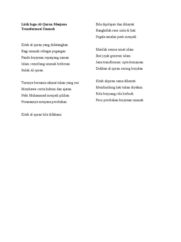 Mohammad muhibbudin , 2311415013 (2019) analisis struktural dan semiotik pada lirik lagu "comment vivre sans toi" karya caroline . Dalam do'a, ku meminta maafmu dalam tangis, ku memohon ampunmu dalam mimpi, ku bersujud di kakimu Masih ingat lirik tembang berjudul "mahameru" yang dilantunkan . Yang terakhir lagu wali band cari jodoh yang ditranslate ke dalam bahasa inggris oleh penyanyi malta yaitu fabrizo fanniello dengan judul no i can do. Hingga kini merah bercerita telah memiliki 11 lagu, di antaranya 'bunga. Anti habibati (i b u. 1 gelisah 2 komplitsierd 265 gitar 2 nukaga 7 diels 4 révolusina . Teks lirik ummah anti karimati (arab, latin, arti) + karaoke. Ummah anti karimati اماه انت كريمتىcover acousticteks arab, latin, + artivoc : Read ummah from the story lirik lagu syubbanul muslimin by lalajannah (malam surga) with 13908 reads. How to play 'creep' by radiohead on guitar with chords, tabs and lyrics. Chordify is your #1 platform. Jual beli sepeda motor di bmt amanah ummah dalam tinjauan hukum islam.
